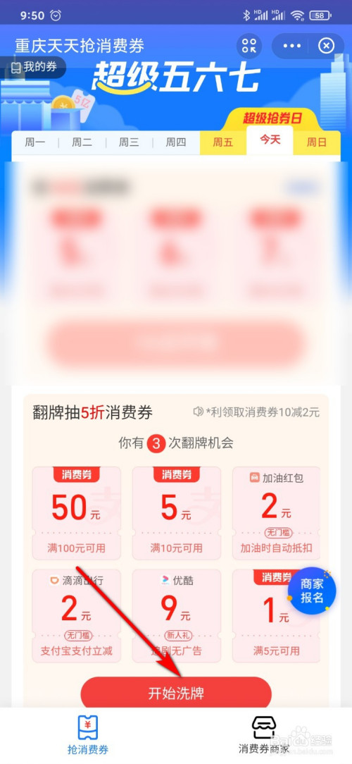 点击“消费券”。