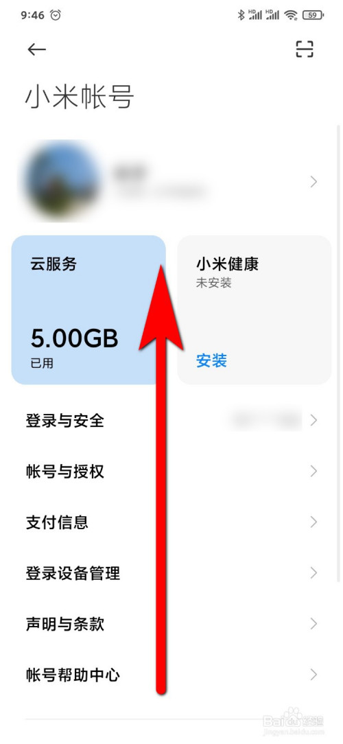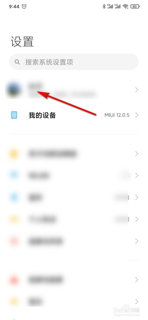 打开小沫攀诸米9手机上的设置,并点击箭蹲铲头所指处。
