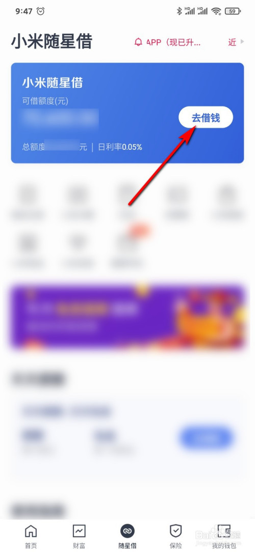 点击“去借钱”即可。