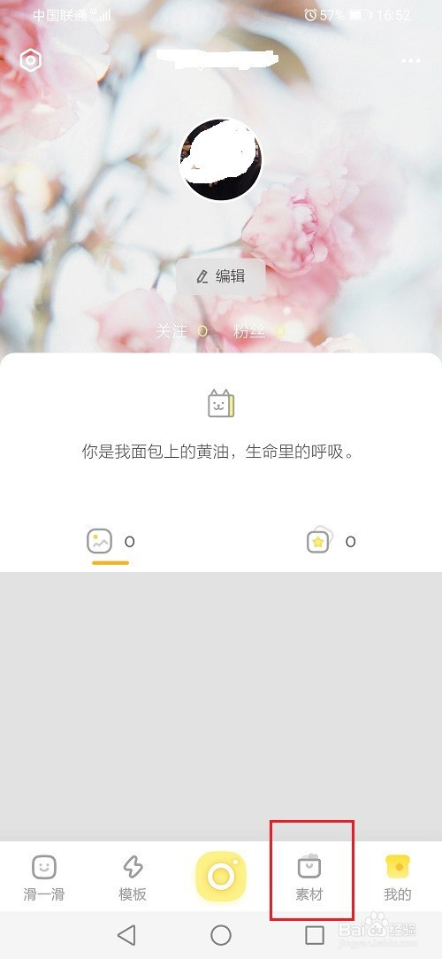 第一步打开黄油相机,进去我的界面之后,点击素材娃低