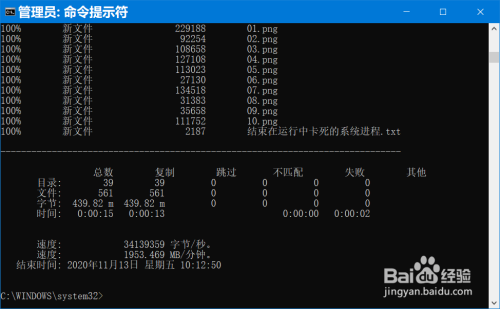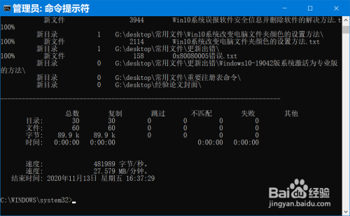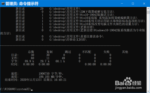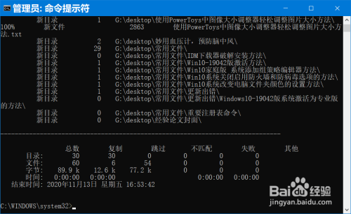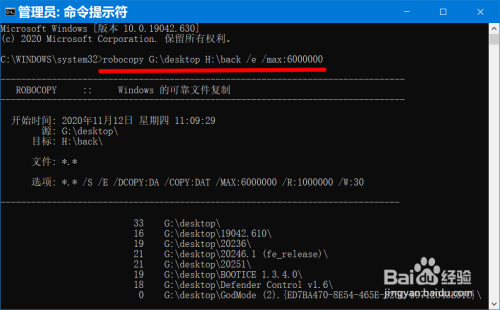 复制robocopy C:\desktop G:\back /e /max:6000000到办理员号令提醒符窗口注冷中,按下回车键。