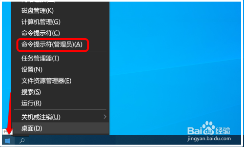 右键点击系统桌面左下角的【起头王各吩】,在开始菜单中点击【号令提醒符(办理员)】;