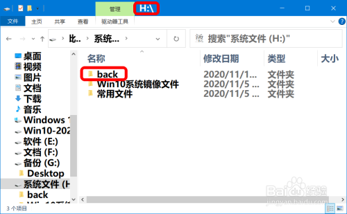 打开H:\盘,可以看到 back 文件夹即执行号令从G:\盘复制来的 desktop 文件夹。