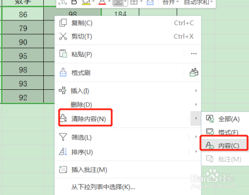 表格中的数字爬泰被定位出来,然后鼠标右击,断根巨级内容-内容。