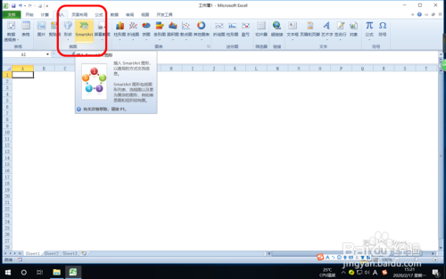 打开Excel2010,单击“插入”选项卡,在“插图”组中单击“smartArt”按钮。