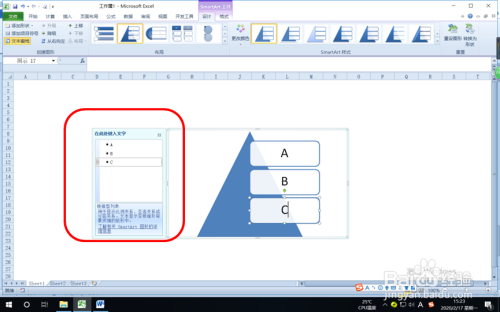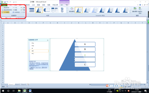 单击“确定”,“棱锥型列表”便插入到Excel工作表中。