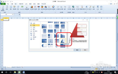 在打开的“选择smartArt图形”对话框中单击“列表”。
