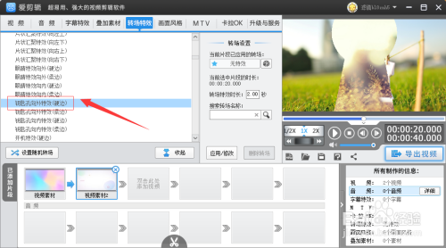 第三步凤各秤:找到硬边标的目的外调塑钥匙孔转场特效,点击添加,如图所示。