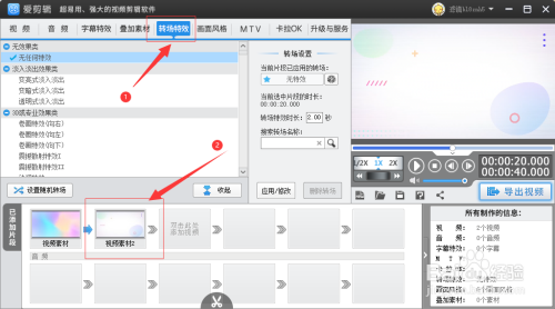 第二步:点击转场近霸特效,然后选择需要添加转场特效的视频,如图所示。