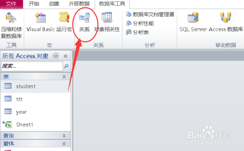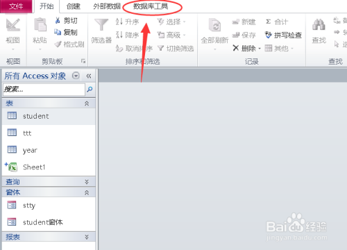 打开access,点击上方的【数据库东西】。