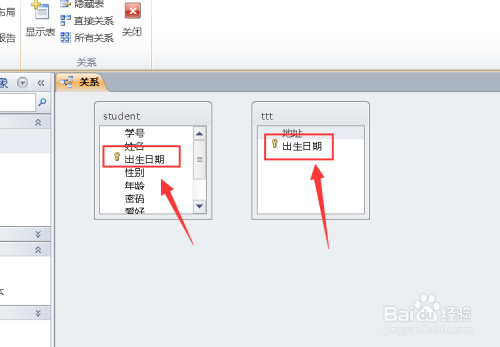 长按此中一个表的【出生日期】,拖动到另一个表的【出生日期】处。