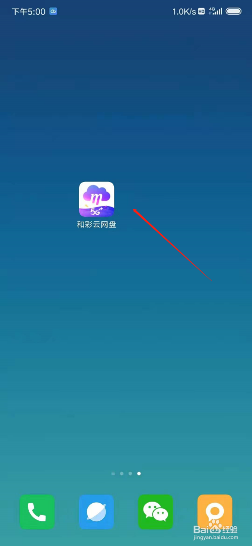 打开手机桌面,点击和彩云网盘的图标。沫柱