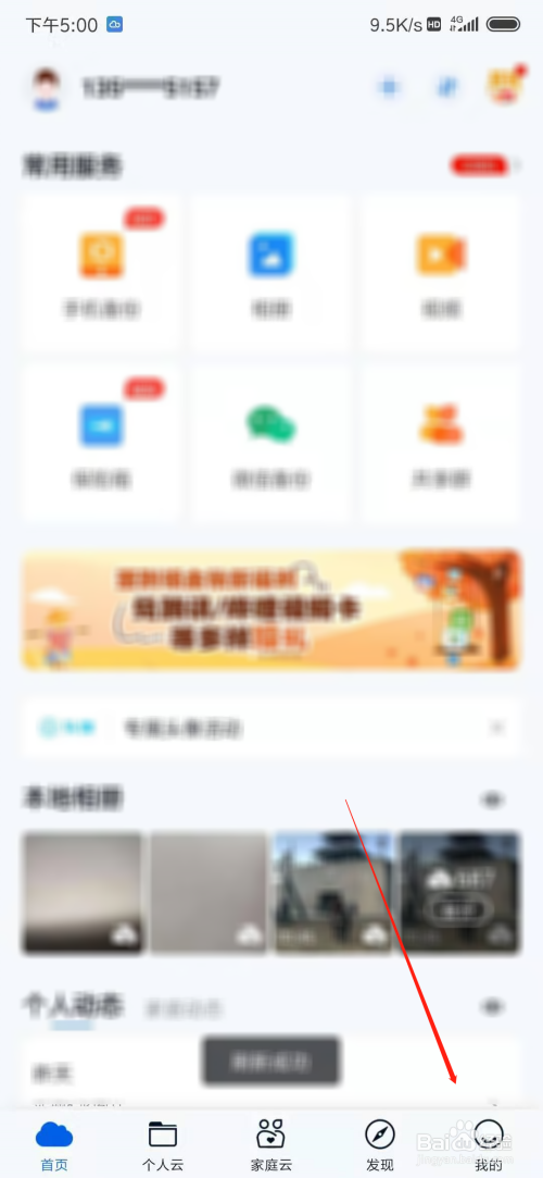 打开和睡译娃彩云网盘之后,点击右下角我的。