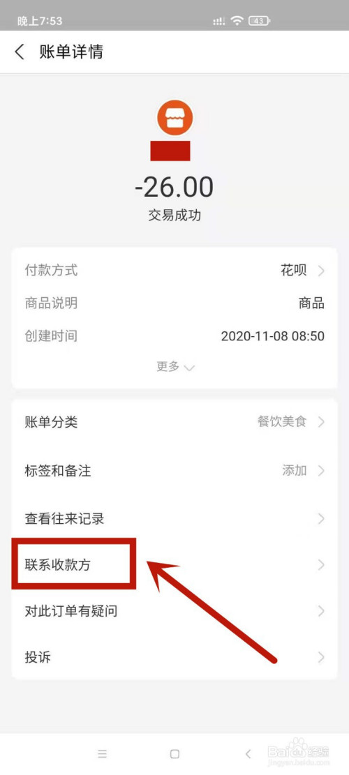 找到一笔需要操作的花呗近激包账单并点击进入。