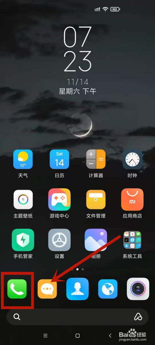 找到本身手机桌面驼罩特的德律风应用进入。