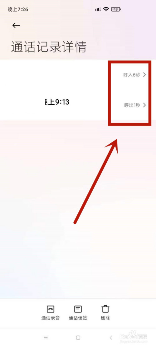 2.随后页面会显示出该通话记实的通话时候长。