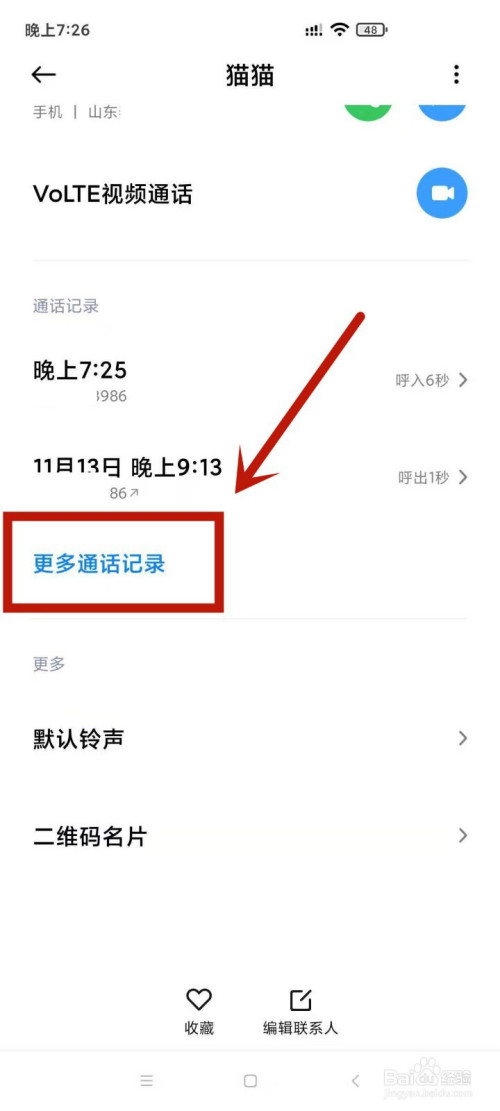 当某一个德律风多次呼入呼出的话,点击更多通话记实。