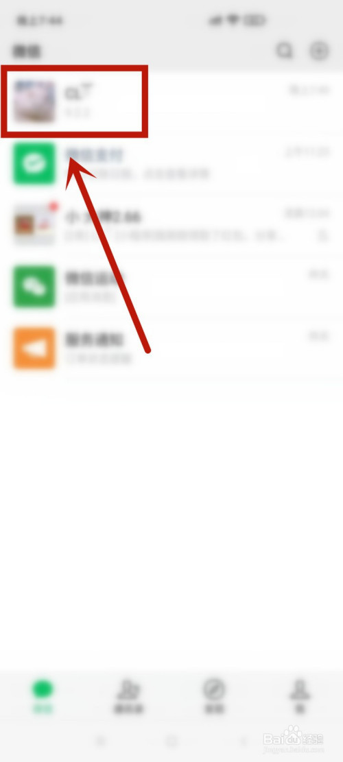 1.打开微信,找到在该群聊中的统一个老友,点击进入聊天界面。