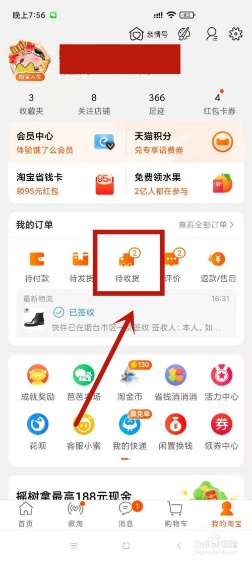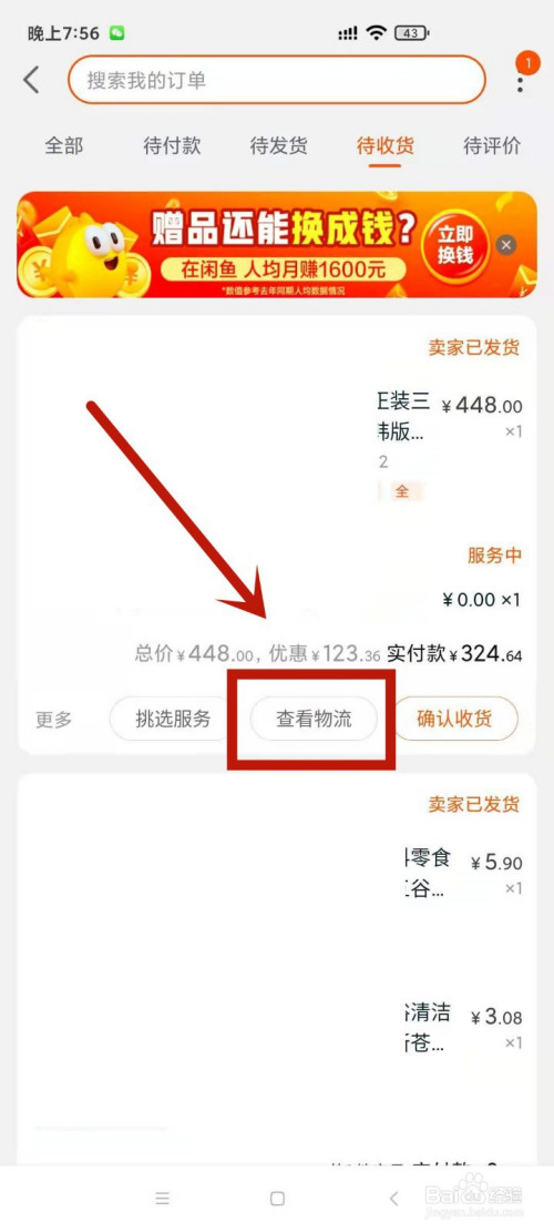 2.点击待收货,再点击进入需要操作的订单下的查看物流。