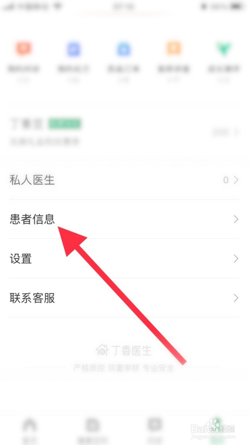 打开丁喷鼻大夫,进入“我的”页签,点击“患者信息”选项