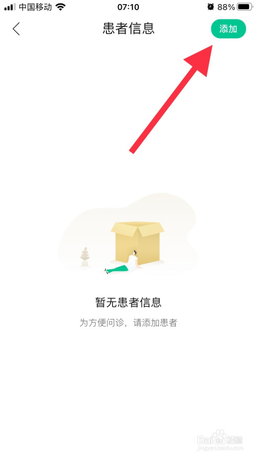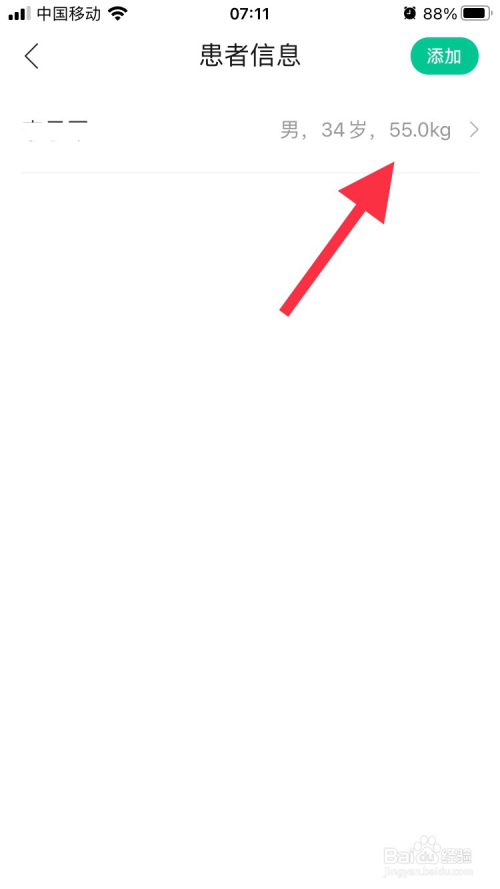 进入患者信息界面之后,点击右上角的“添加”