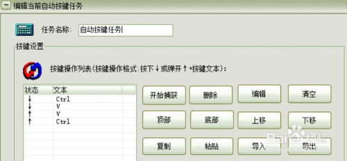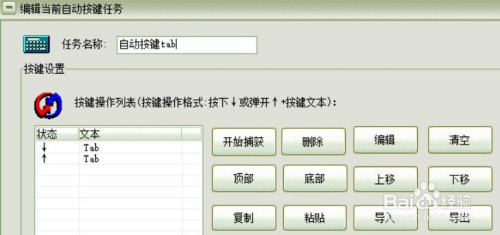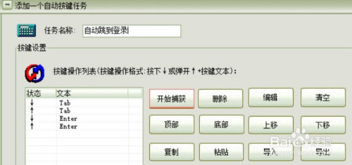 我们除了可以经由过程鼠标主动点击使命把输入核心定位,也可以用系统自囊倘带的tab按键定位,tab键是所有Windows窗口供给的默认核心切换键。在阿冲万能点击王软件里的主动按键使命,经由过程开启捕捉,可以把肆意想要的按键列表捕捉,并实现取代我们手工按键的动作。