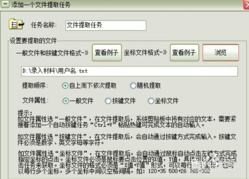 在用户名输入框进行填写时,需要从Excel数据里复制,再粘贴。这样的操作比力繁琐,我们可以利用Excel的vba宏,把每一列数据主动导出到TXT文本,再利用阿冲万能点击王软件里的舍鬼文件提取使命即可,就能主动依次输入的。文件提取使命这里要选择“一般文件”,然后在后面添加主动按键使命Ctrl+V即可。