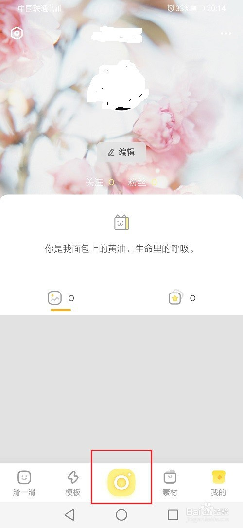 第一步打开黄油相露材机,点击拍摄图标
