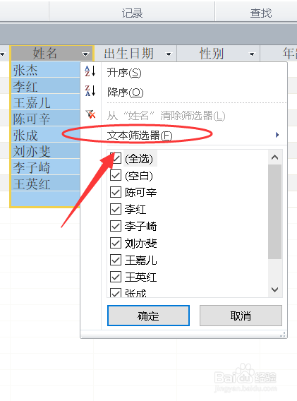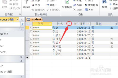 点击【姓名】字段右侧的倒侮率蚊三角按钮。