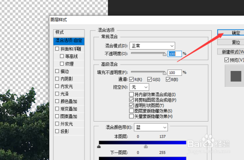 在本图层下面拉动混动条从右标的目的左,蓝天就扣没了。