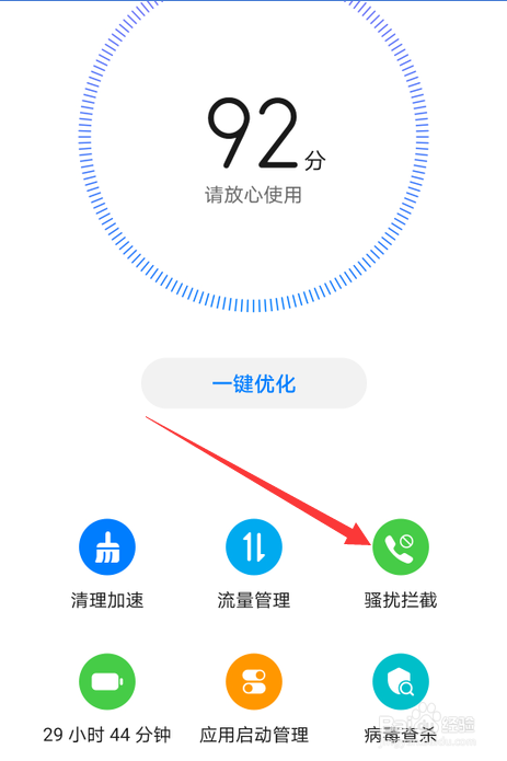 进入手码蚂机管家后,点击骚扰拦霸睡截。