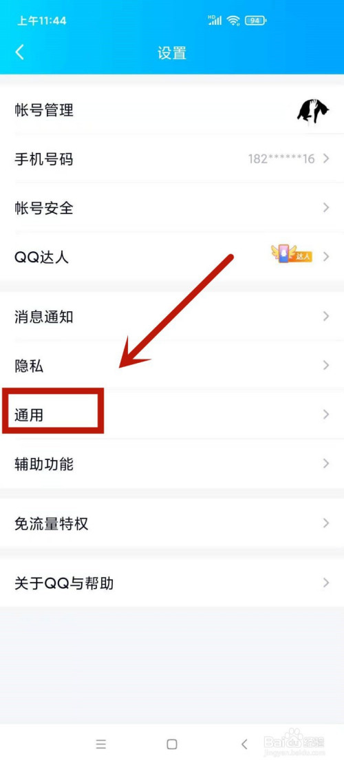 在设置页面,点击进入通用选项。