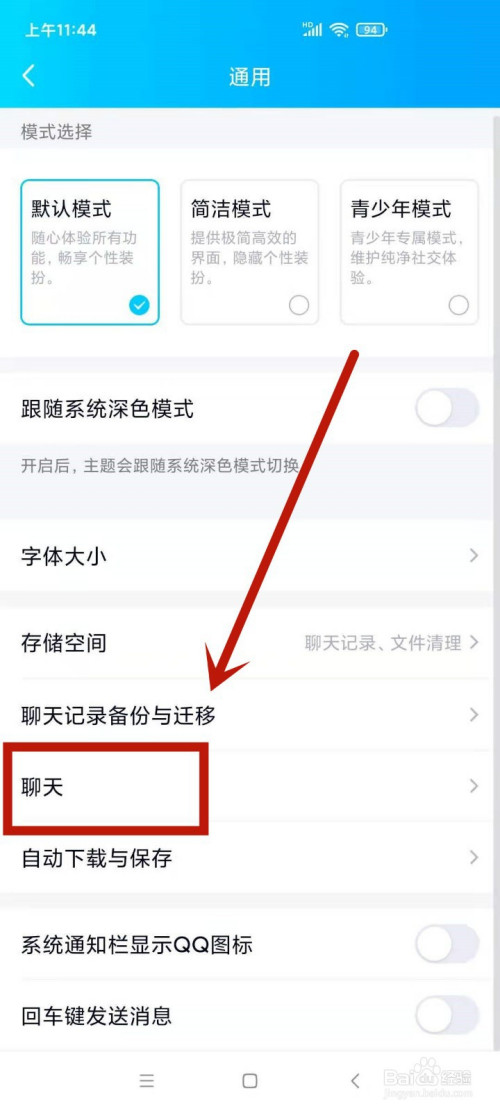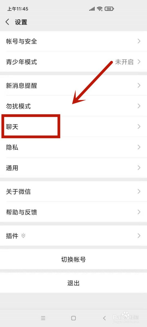 在设置页面,点击进入聊天选项。