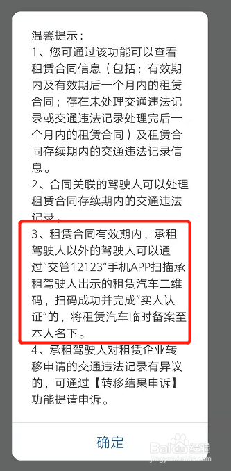 如有租赁车违法记实舍侧会在此页面显示,点击温馨提醒查看方式:将姑且租赁车互雁暗存案毙级至本身名下,去向理扣分,缴纳罚条目等其他营业就可以了。