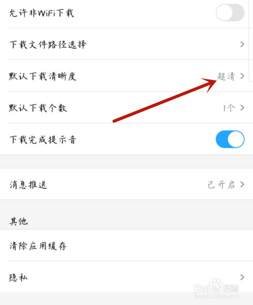 在设置中找到默阅彩认下载清楚度点击进入。