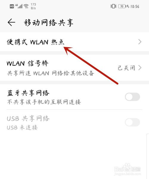 再选择打开便携式WLAN热点。