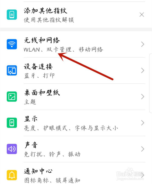 在设悦英置菜单中,找到并打开无线和收集。