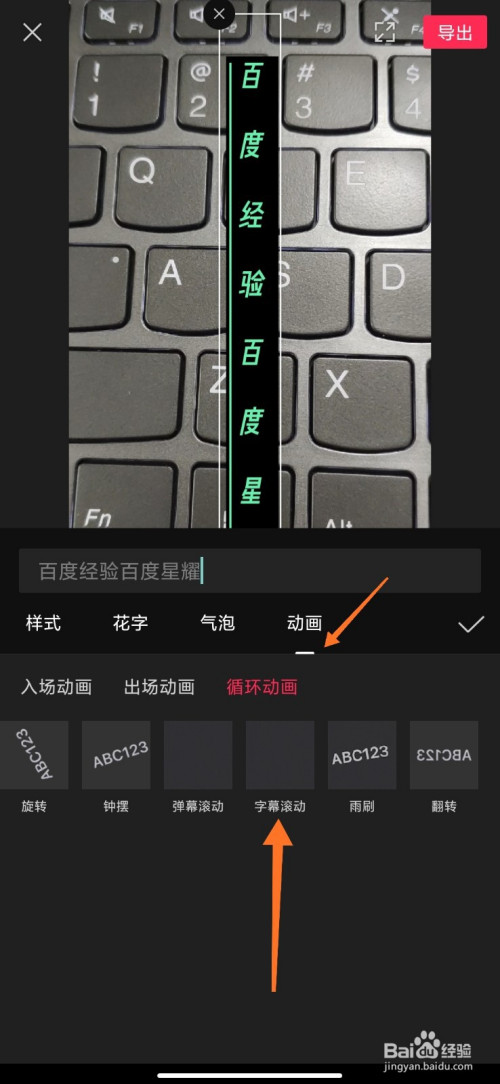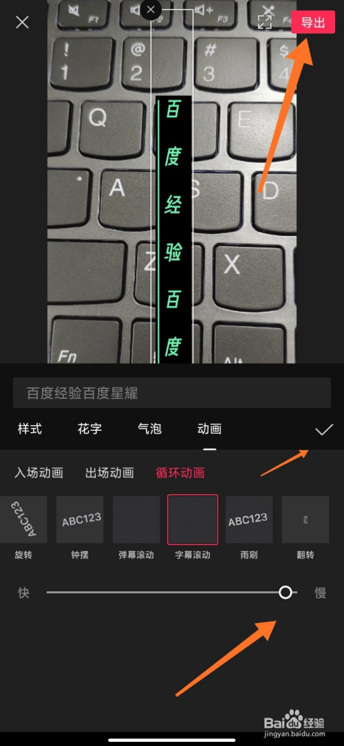 动画添加完当作,设置【字幕滚动速度】——【对号】——【导出】;