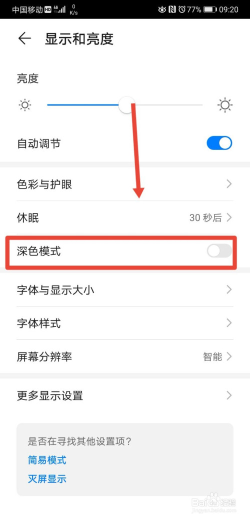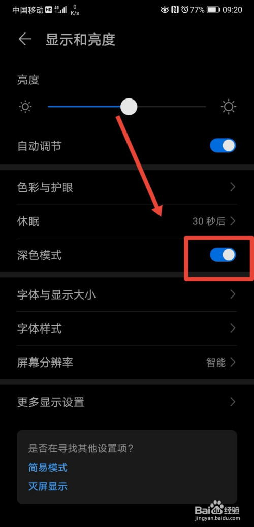- 设置深色模式后,只有进入到app内才能看到结果,在手机本家儿界面是不会显示为深色模式的。