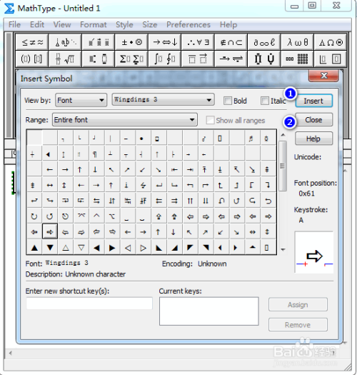 在弹出的对话框中,将“查看”设置为“字体”以及“Wing dings 3”,其他连结默认,具体如图所示: