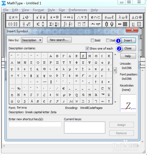 在符号面板中,找到并点中大写捷塔,具体如图所示: