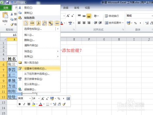 选择需要添加前缀的单位格,单击鼠标右键,选择【设置单位格格局】;