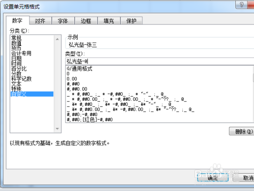 在【设置单位格格局】对话框中,选择【自界说】,并在类型下输入【待插手前缀-@】;