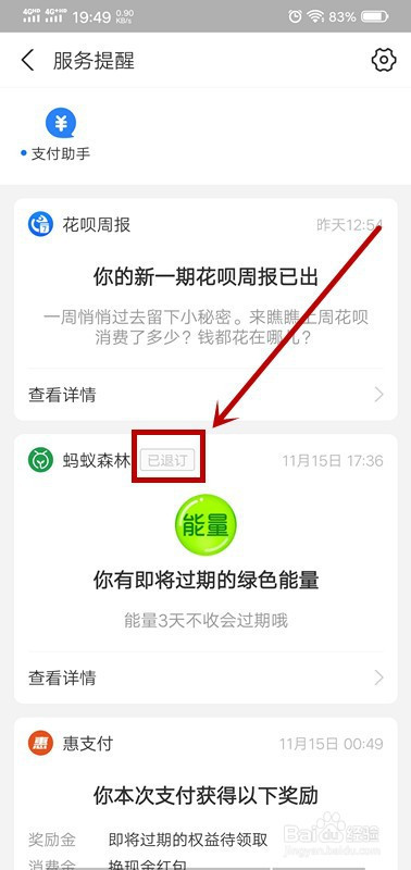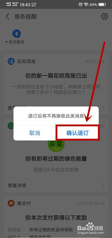进入办事提醒页面,长按需要退订的“单条动静”;