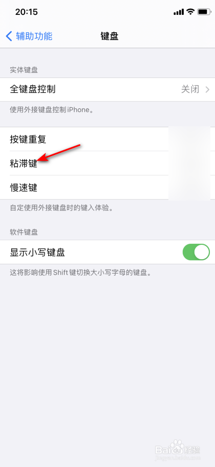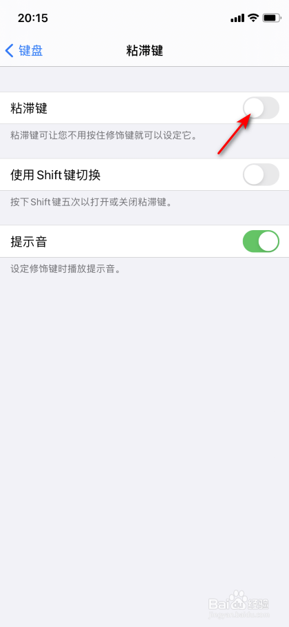 之后将粘滞键的滑动按钮标的目的左滑动封闭。