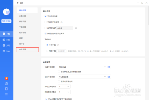 4、点击左侧高级设置选项,