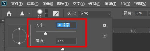 第四步,在上方菜单栏设置锐化东西的大小和硬度,模式一般选择正常模式。