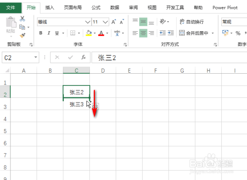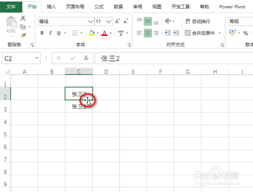 选中上面的单位格,移动光标到单位格下边缘,使得光标变贪墨为黑色十字,具体如图所示: