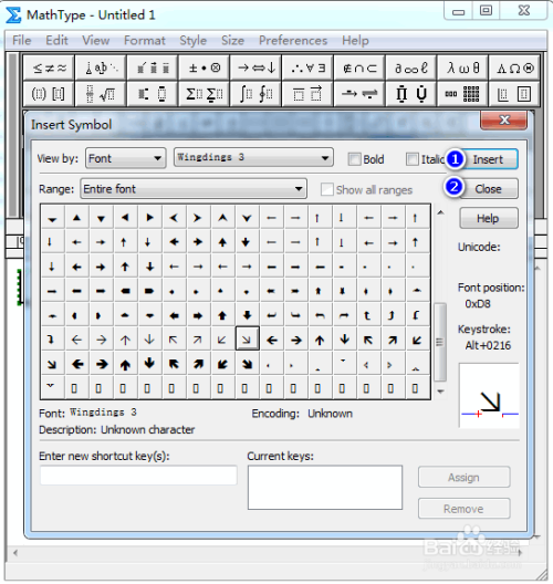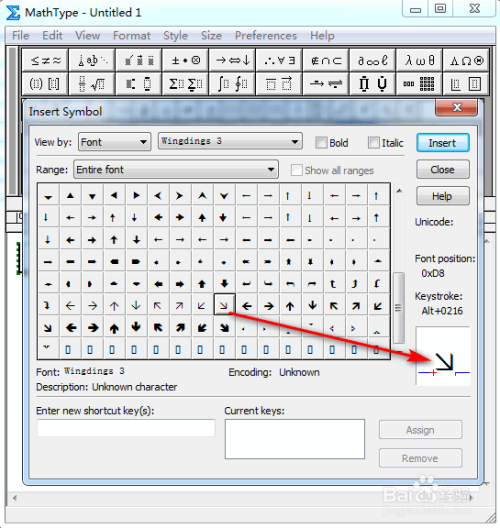 在弹出的对话框中,将“查看”设置为“字体”以及“Wing dings 3”,其他连结默认,具体如图所示:
