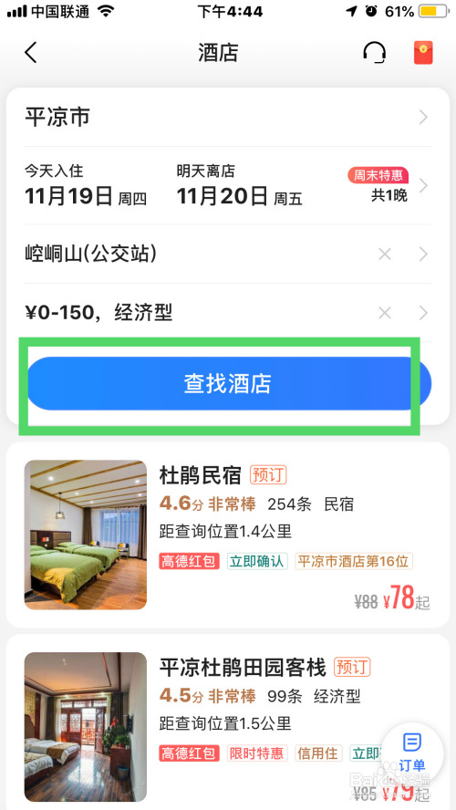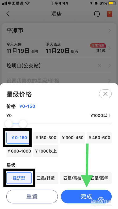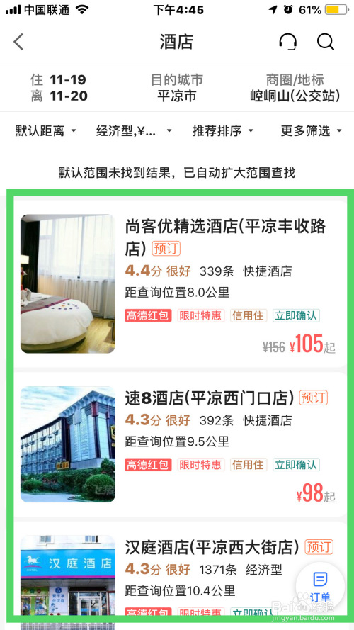 紧接着,按钮选择游栗丽价钱经济型的酒店,点击完当作